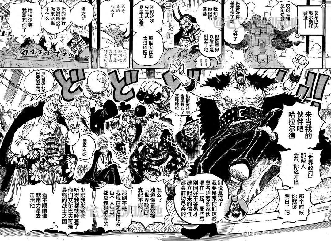 洛克斯在56年前的世界会议上大闹一场,他绑架了五名国王,还斩杀了海军大将,闯入花之房间里面,看到真正的世界之王。伊姆大人就是天龙人的王,她的实力还是未知数,洛克斯根本不敢出手,他只能放在狠话就逃跑了。洛克斯说了以后还会回来的,回到这里,这是洛克斯向伊姆大人宣战。